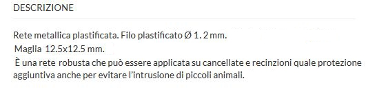 Rete metallica plastificata