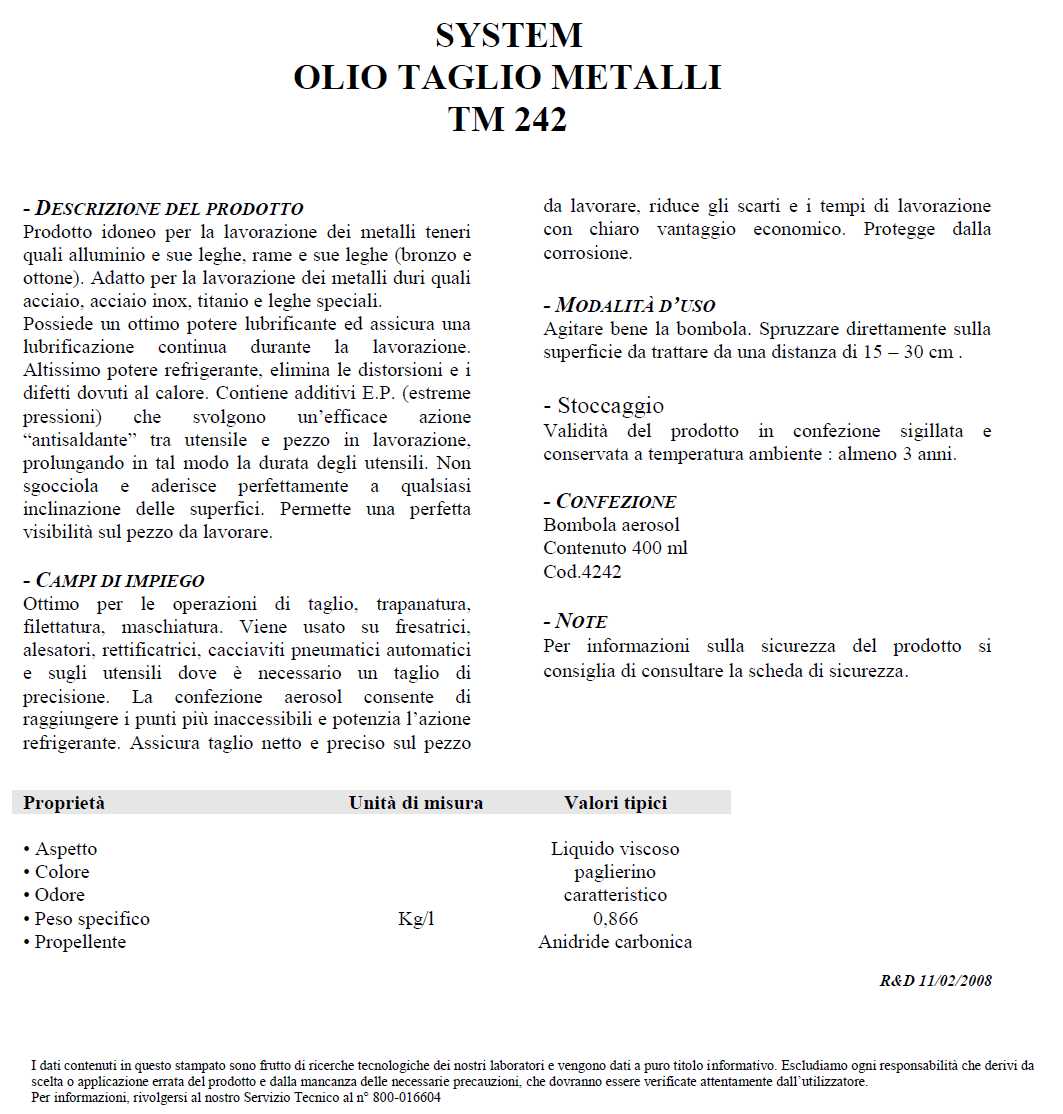 AREXONS SYSTEM TM242 OLIO TAGLIO METALLI