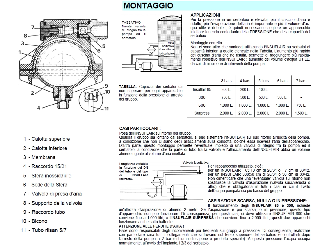 Il funzionamento di insuflair esige un altezza di aspirazione di almeno 2 metri