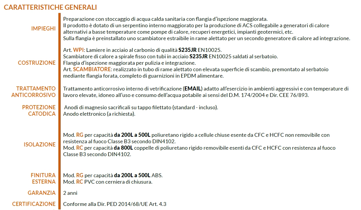 Bollitore per pompa di calore WPI