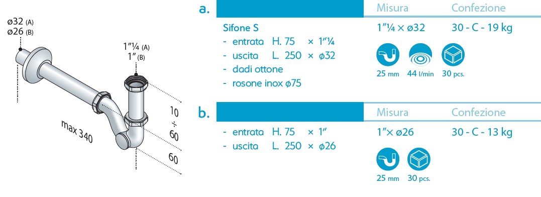 SIFONE S S/P 1.1/4 25 cm