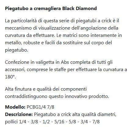 Piegatubi a cremagliera CORE EQUIPMENT BLACK DIAMOND PCBG1/4 7/8