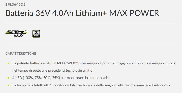 Potente batteria da 4.0Ah Lithium+ MAX POWER