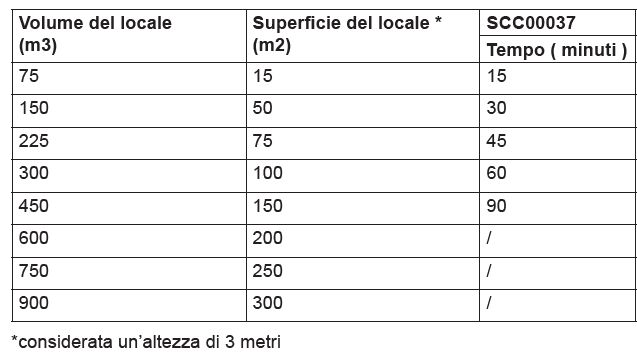 Queste nuove macchine, permettono di trattare con efficacia e rapidità, ambienti con superfici fino a 150 m^2 per un volume totale di 450 m^3.